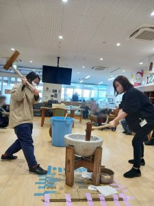 利用者さんへバトンタッチ✋もちもちなお餅ができあがりました😊