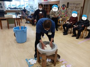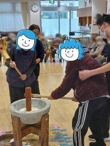 利用者さんへバトンタッチ✋もちもちなお餅ができあがりました😊