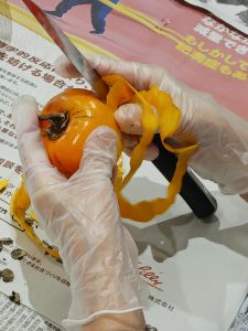 柿がするすると剥かれて、あっという間にカゴいっぱいになりました。