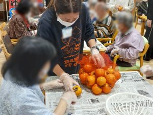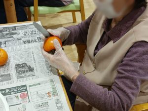 今回は、デイケアゆうばで行った「干し柿づくり」の様子をご紹介します。