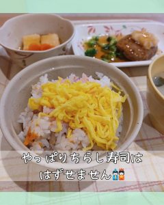 メニューは、彩り豊かな「ちらし寿司」!!ひなまつりにはかかせませんね😊